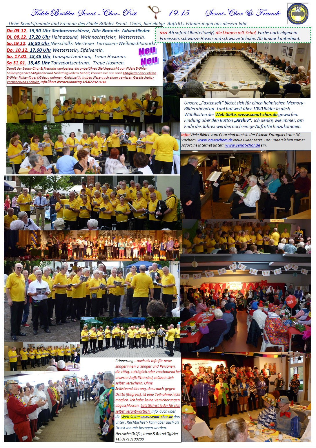 In Anlehnung an unsere lustige Clique habe ich vor 20 Jahren einen Mitsing-Chor gegründet, der zum Mitsingen der Zuschauer animiert. Somit sind Spaß und Freude vorprogrammiert und mit der Gesamtabwicklung habe ich eine interessante Aufgabe.