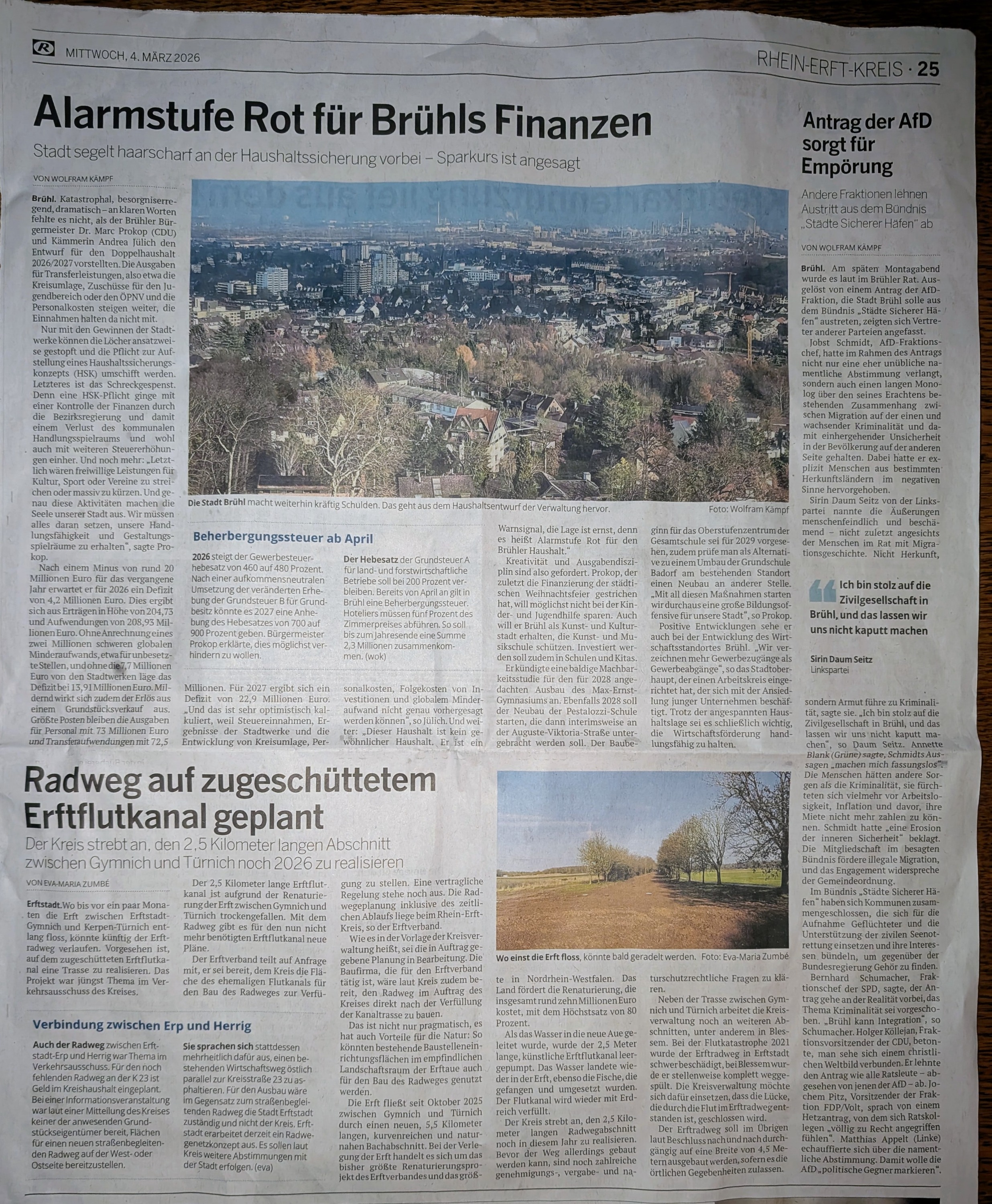 Betr. 02.03.2026 Brühler Ratssitzung, Antrag von der AFD sorgt für Empörung.