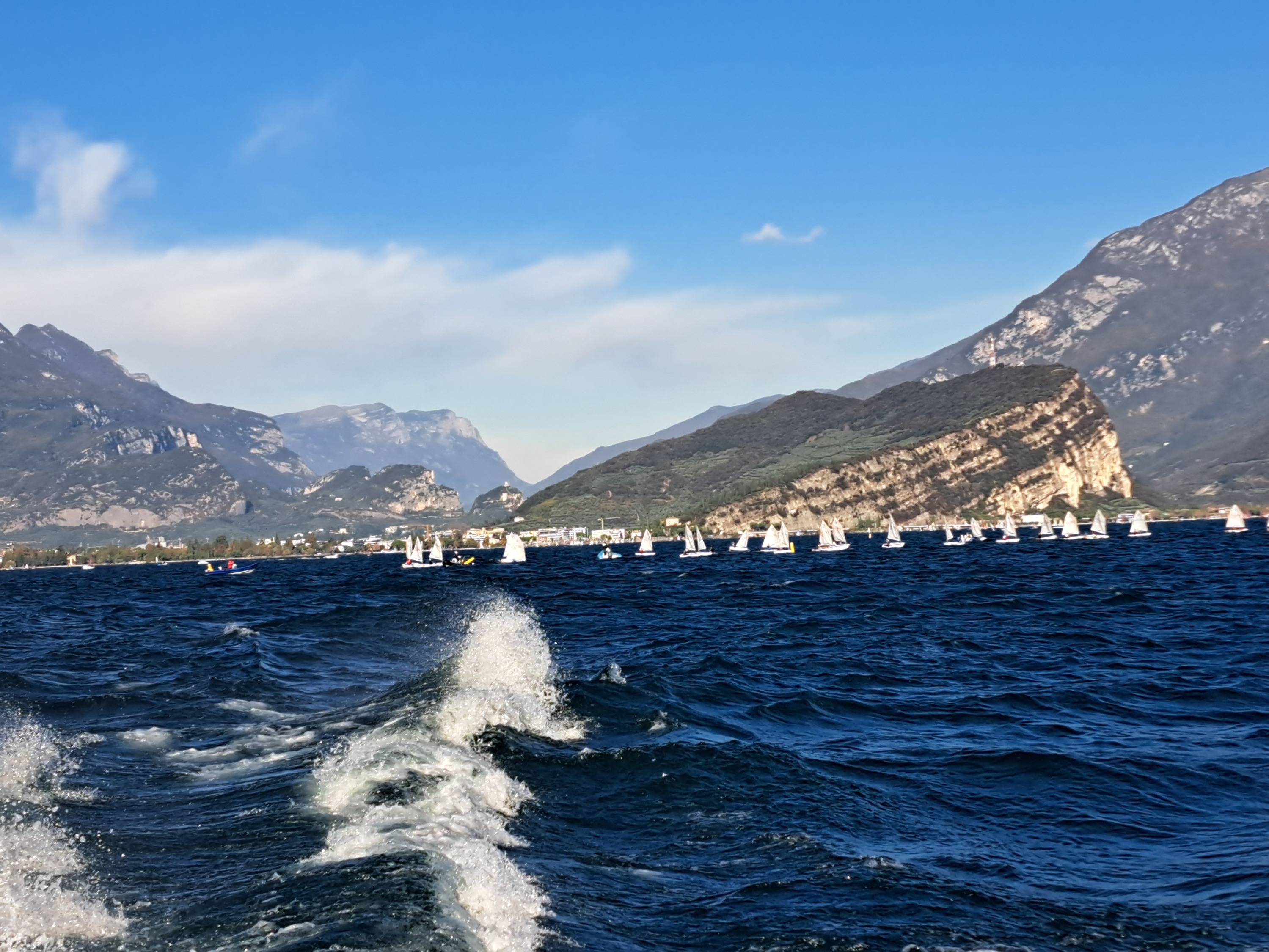Mit Moby Dick 2 ging unsere rasante Fahrt über den Gardasee mit Blick auf die in die Felsen gebaute Gardesana Occidentale von Riva nach Limone.
