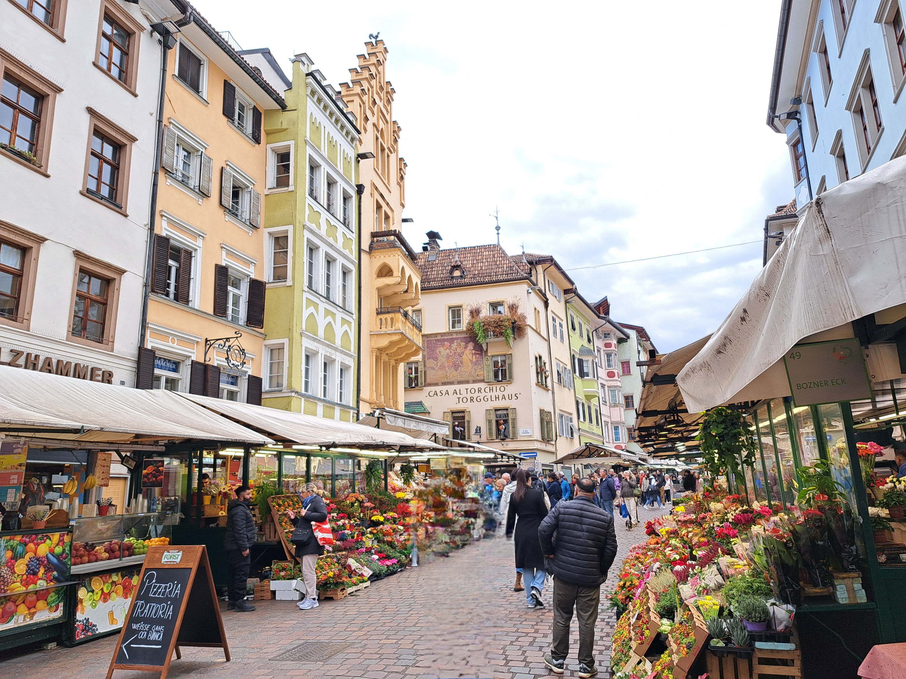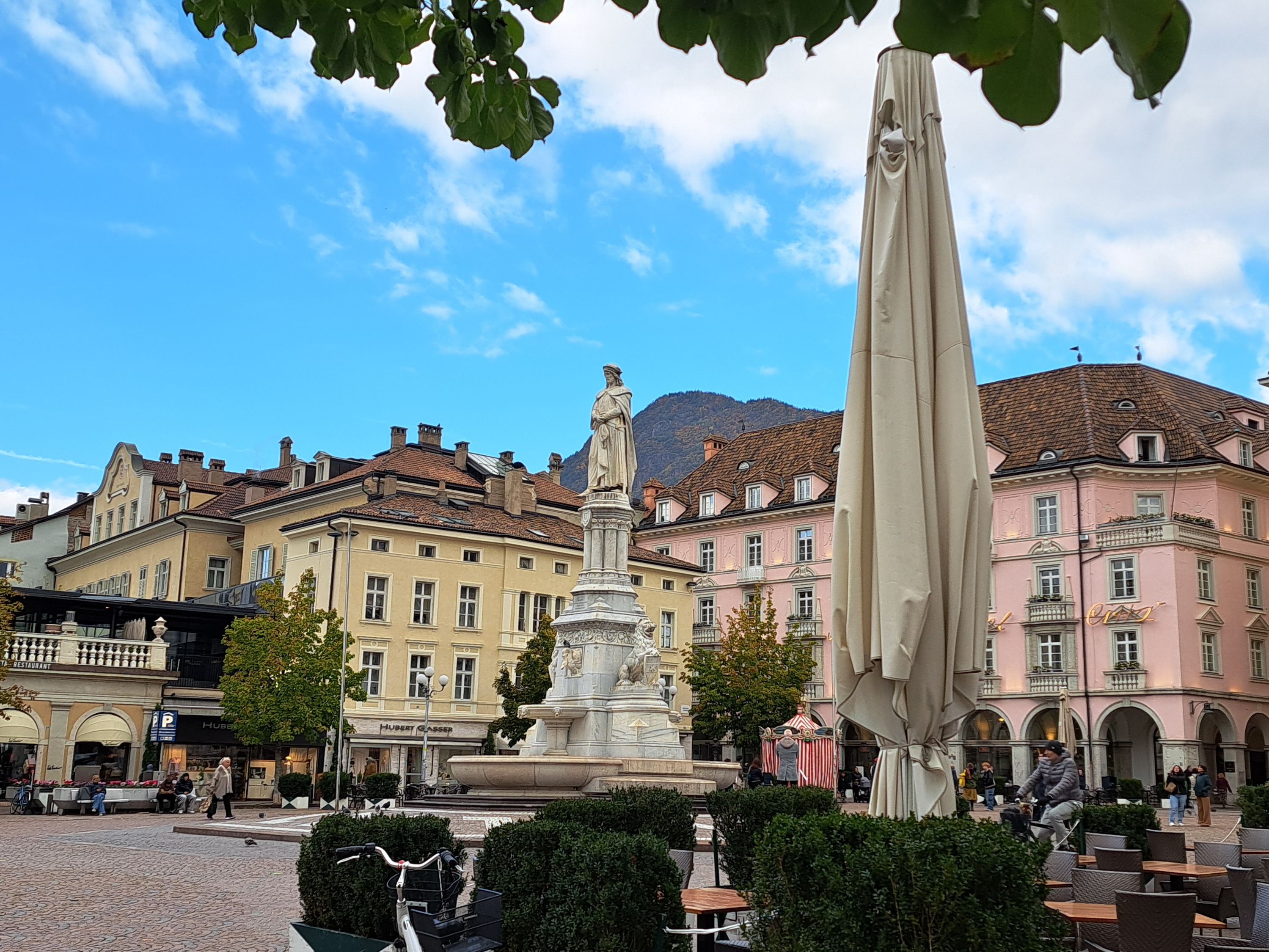 Jetzt aber zurück zum Gardasee bzw. nach Bozen. Nach unserem Rundgang durch die Laubengänge und über schmale Gassen mit bunten Marktständen machten wir es uns in der Nähe des Treffpunktes in einem hübschen Café gemütlich. Anschließend war ich noch kurz im Dom.