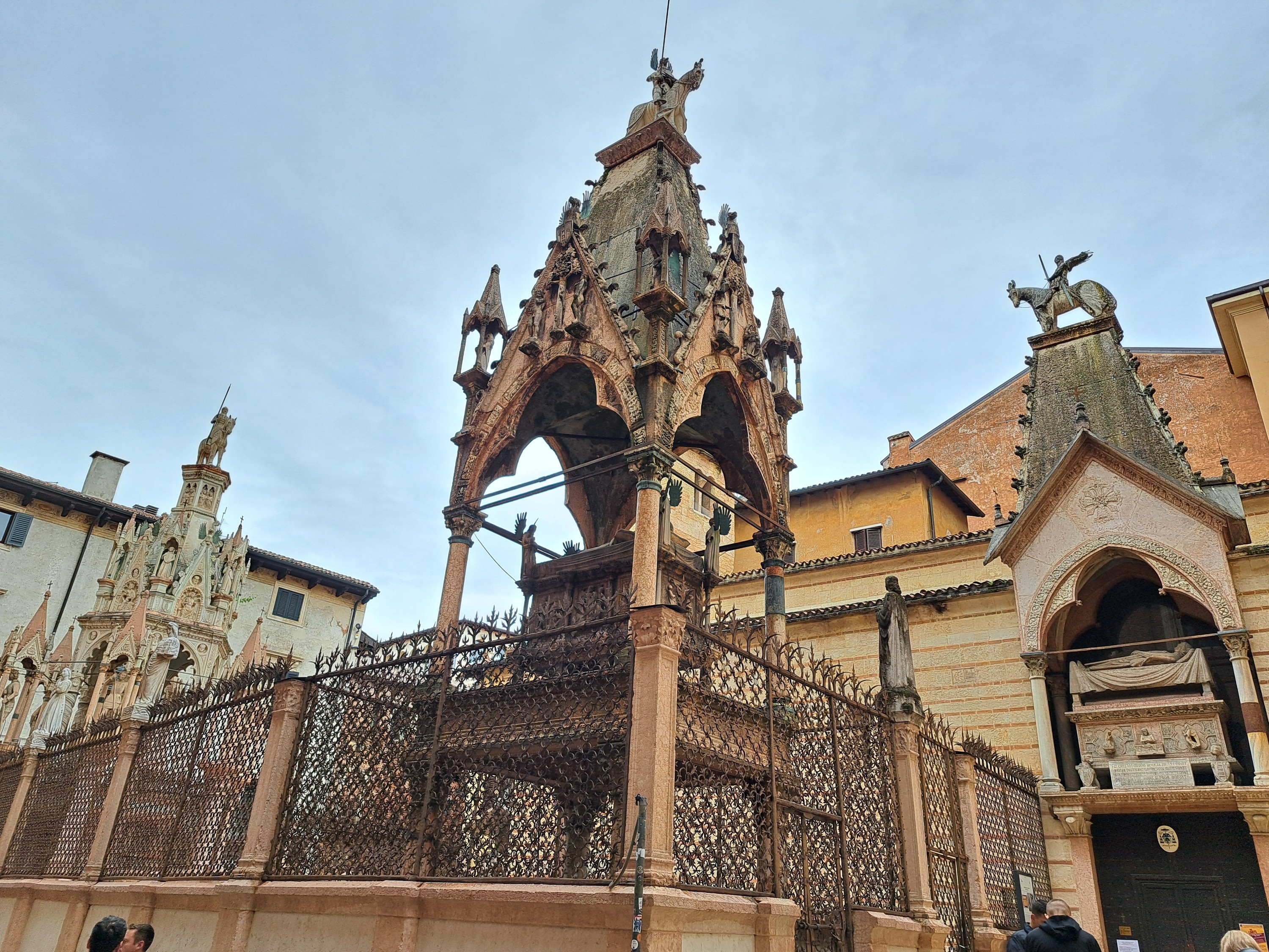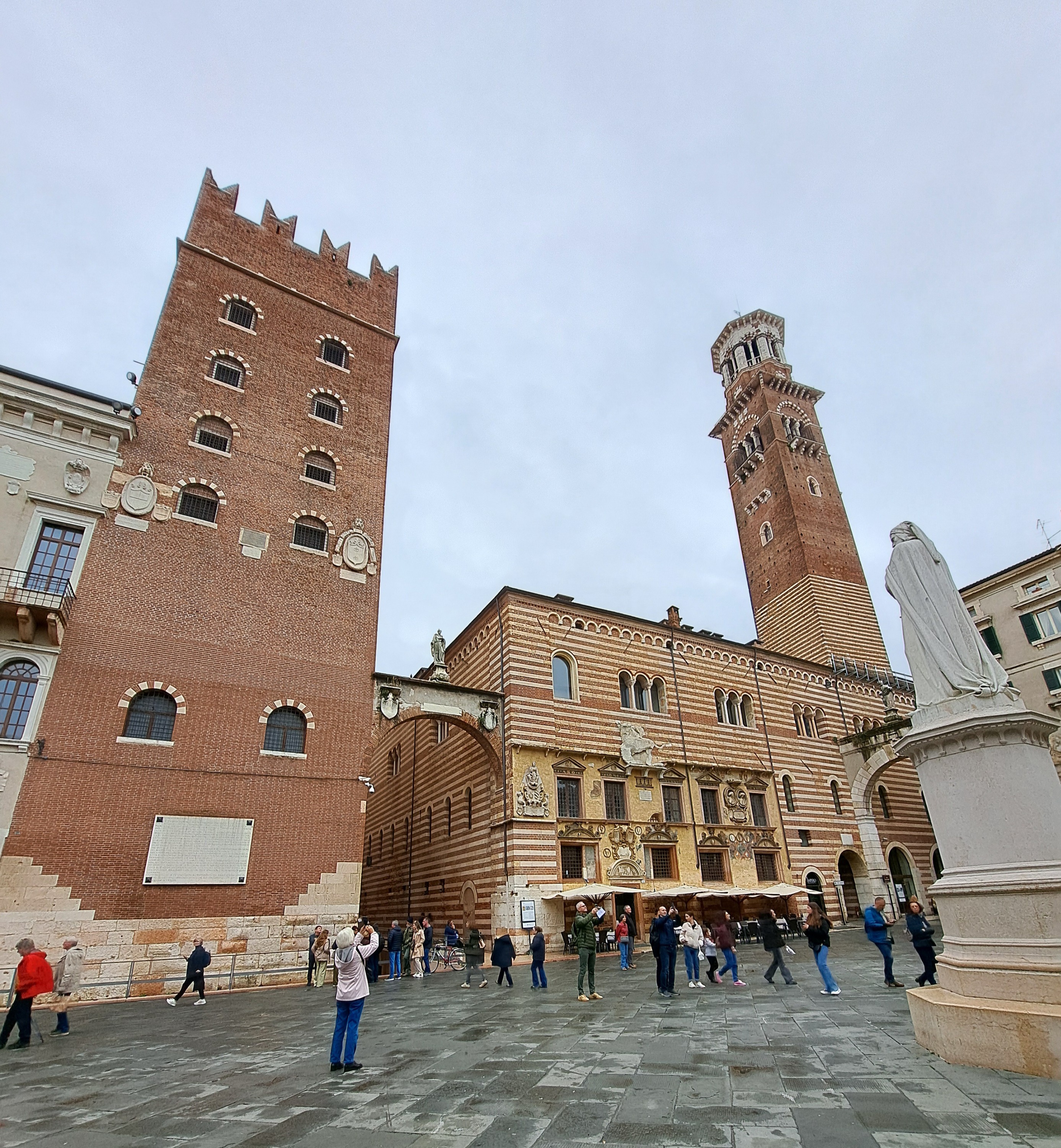 Das nächste Foto zeigt Dante Alighieri (von hinten) auf der Piazza dei Signoria, im ehemaligen Machtzentrum Veronas. Ringsum befinden sich prächtige Bauten der Scaliger.