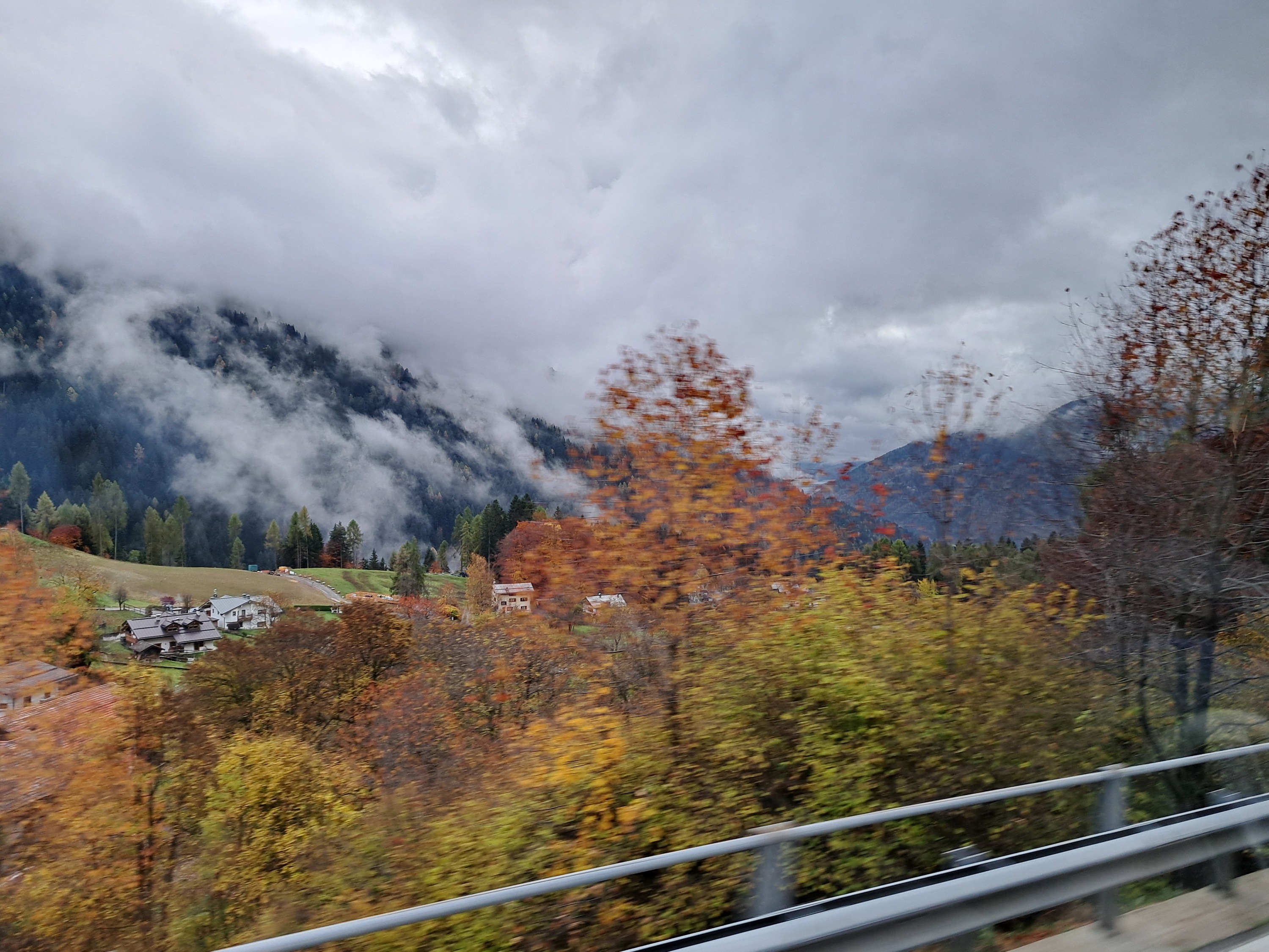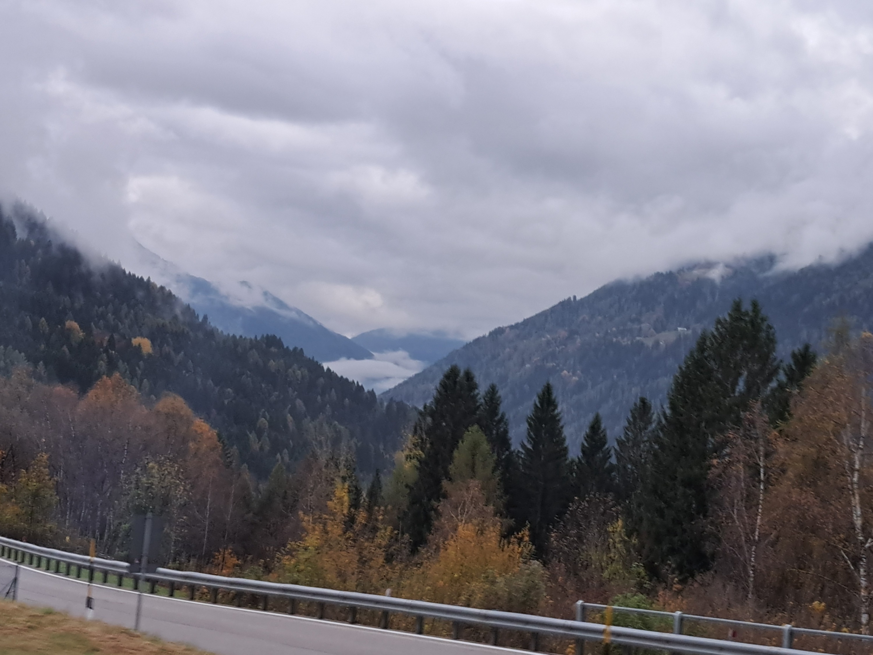 Unsere Fahrt durch die wunderbaren Dolomiten führte bis zum mondänen Madonna di Campiglio. Derzeit ist hier keine Saison. Die vielen Hotels waren geschlossen. An der Straße im Ort wurde gebaut und dann fing es auch noch an zu regnen. Das war nicht einladend. In dem einzig offenen Laden kaufte ich leckere Schokolade. Dann simmer widder abgedüst.