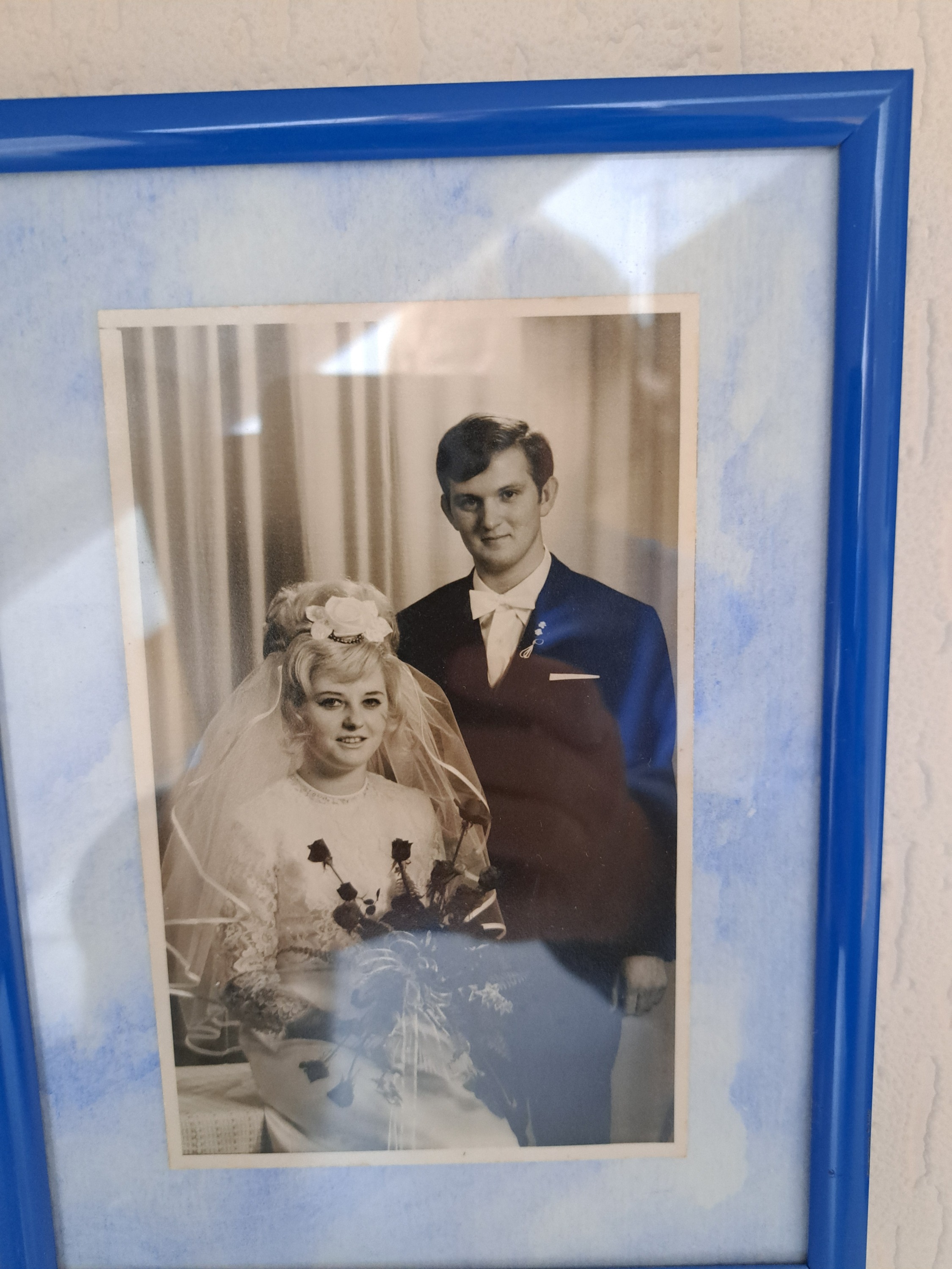 Anfangs haben wir bei seinen Eltern gelebt. Mit dem Nötigsten: Schlafzimmer und Küche (hatten wir zur Hochzeit geschenkt bekommen), Tisch und 4 Stühle. Helmut brachte seinen alten VW mit in die Ehe.