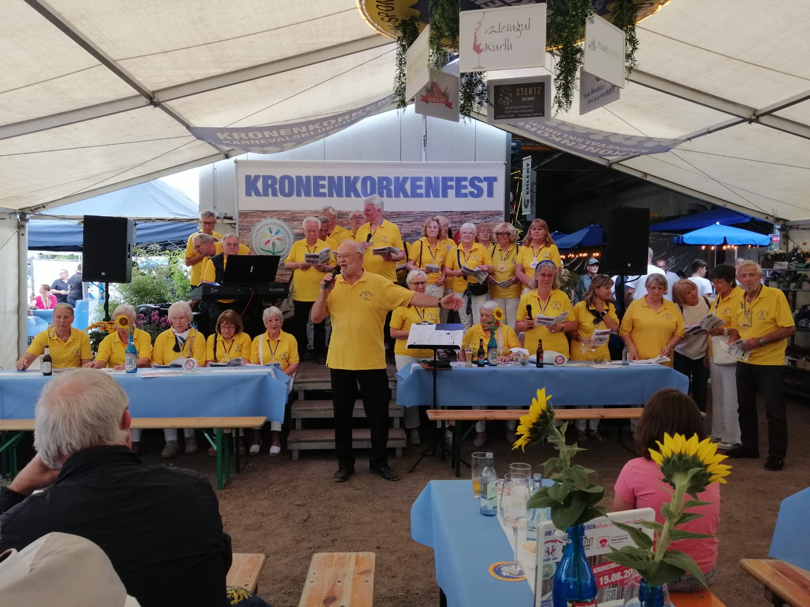 Vorgestern war ich mit vielen "Gelben" per Bus unterwegs. Die goldgelben Senat-Chor-Shirts leuchten wie der pure Sonnenschein. Das passte gut zu den zahlreichen Sonnenblumen, die beim Kronenkorkenfest in Bad Breisig auf den Tischen standen.